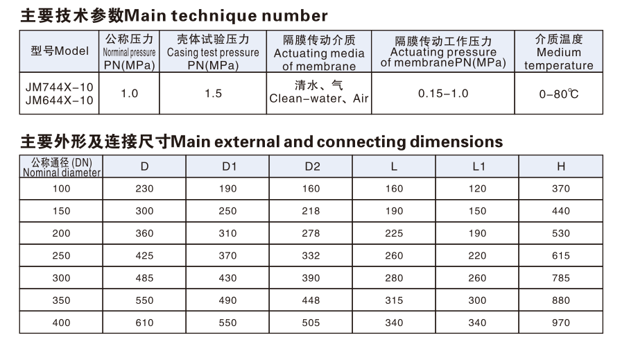 隔膜式排泥閥技術參數:
